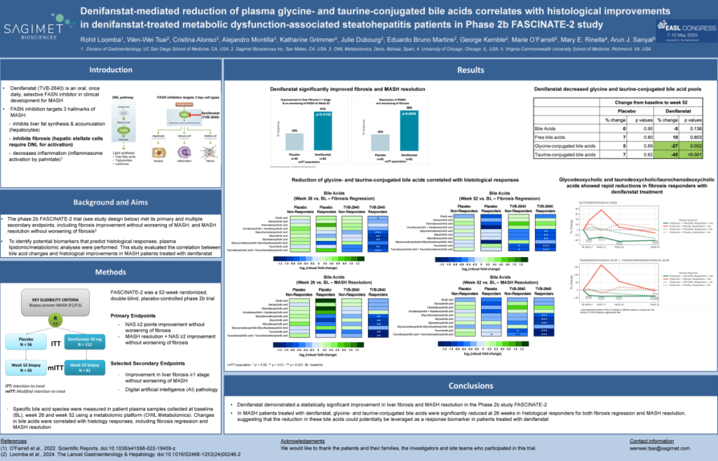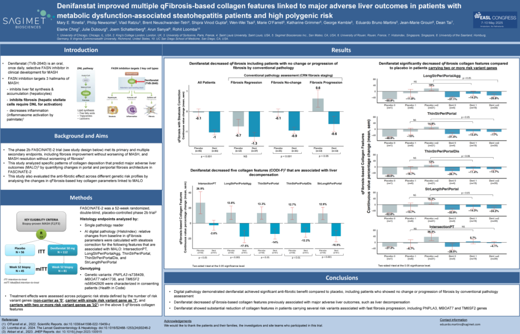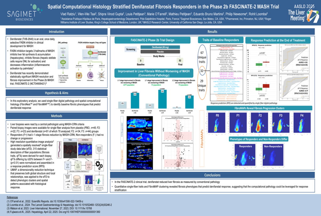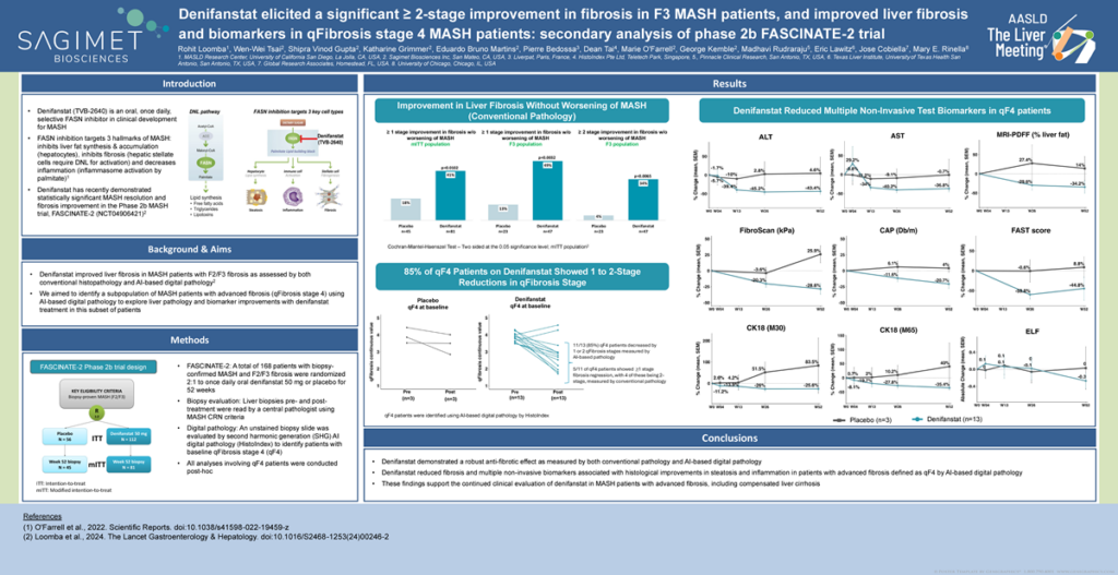 Denifanstat elicited a significant ≥ 2-stage improvement in fibrosis in F3 MASH patients, and improved liver fibrosis and biomarkers in qFibrosis stage 4 MASH patients: secondary analysis of the phase 2b FASCINATE-2 trial